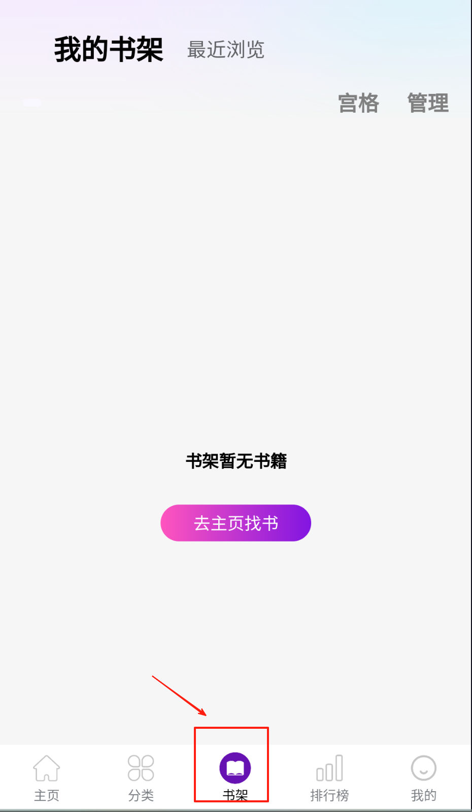 1、点击书架图标添加收藏作品,长按书籍可创建分类文件夹。