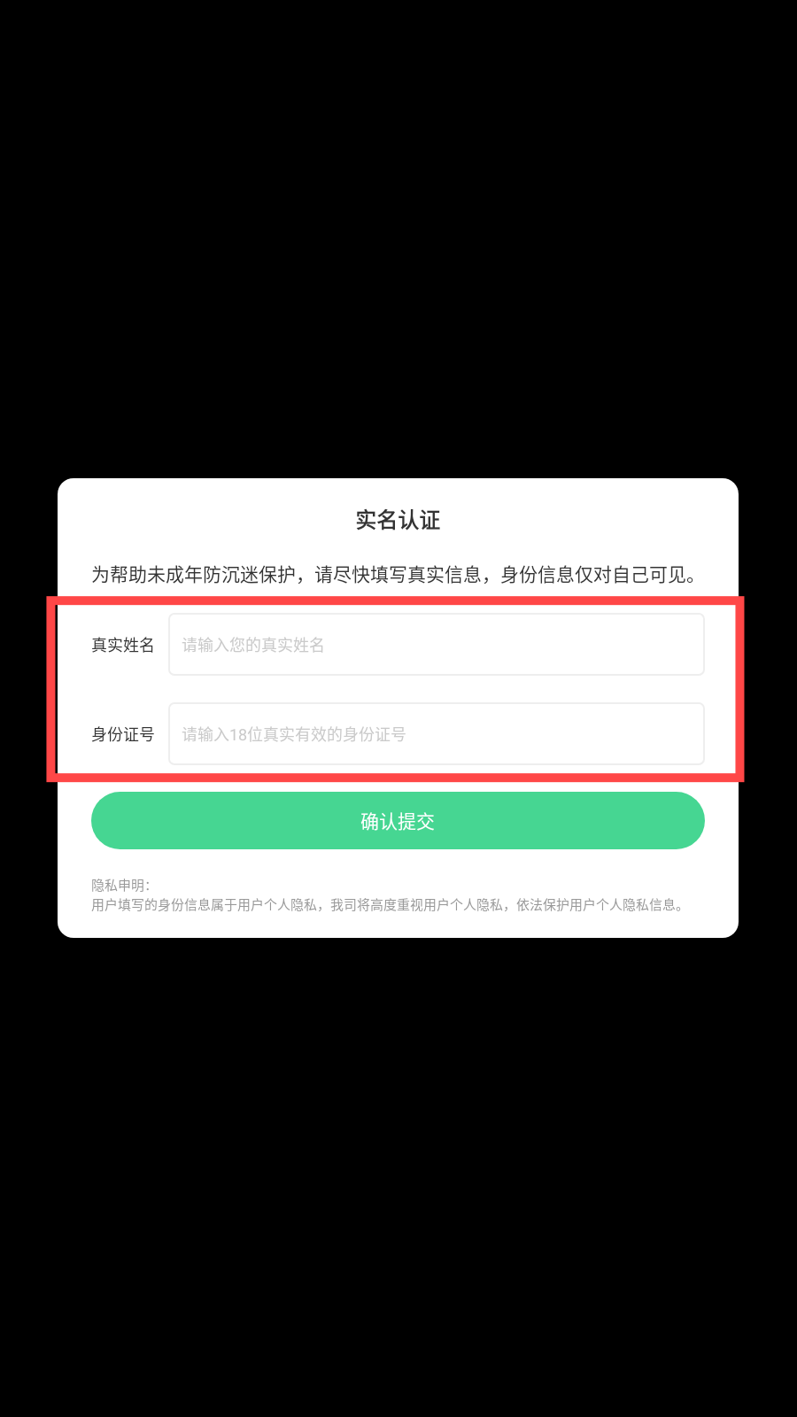 2、输入真实姓名和身份证号码。