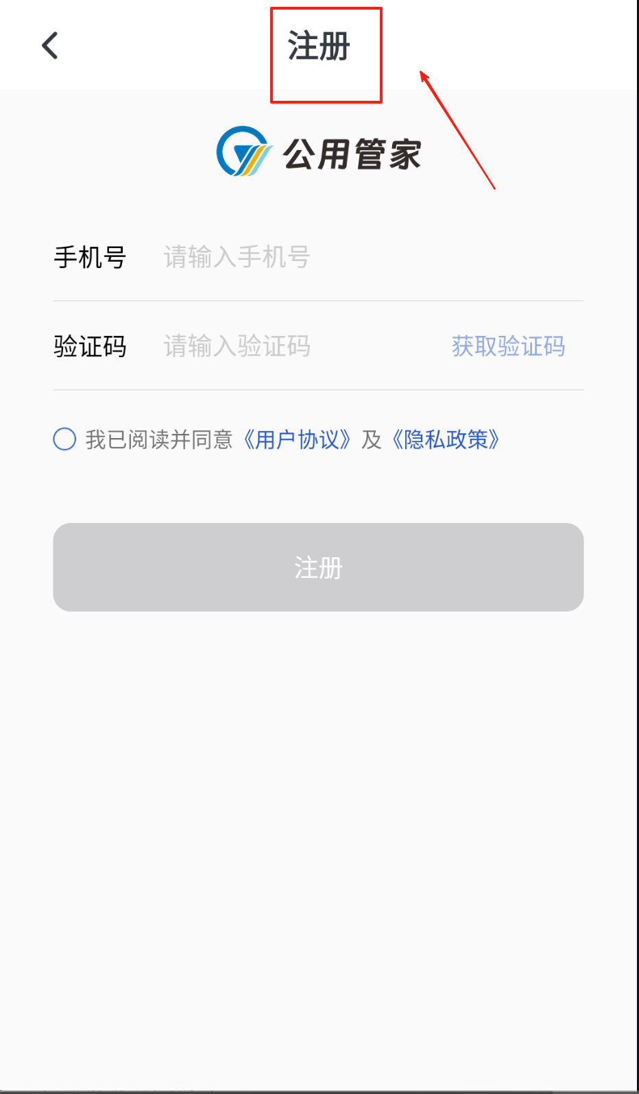 1、打开应用进入注册界面,先输入手机号再点击右边验证码按钮,注意页面底部的协议复选框要勾选才能激活注册按钮,缺一不可。