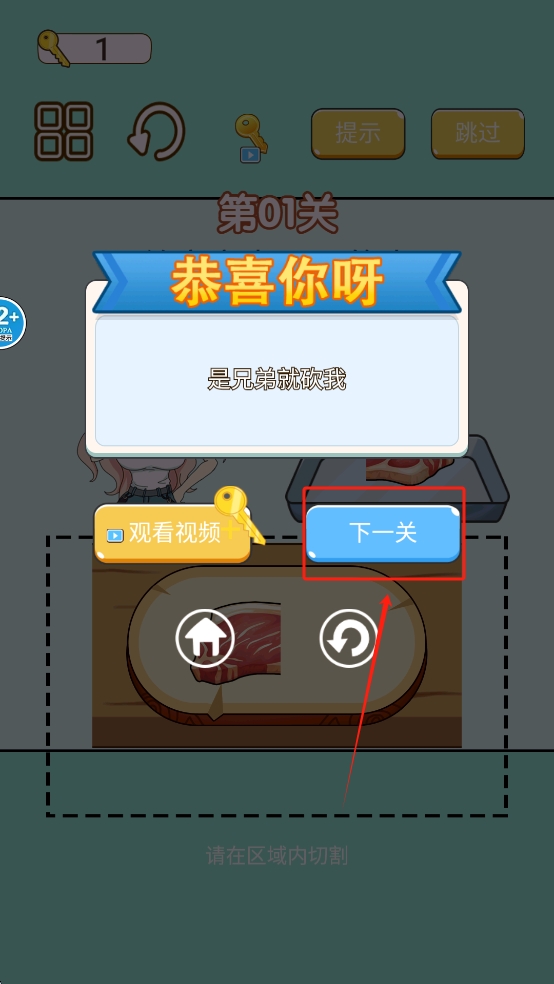4、点击“下一关”按钮继续游戏。