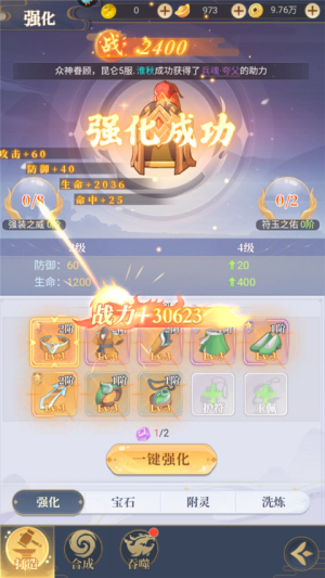 2、炼器造化炉:收集天材地宝锻造本命法宝,自由附加暴击、吸血等特殊词条。