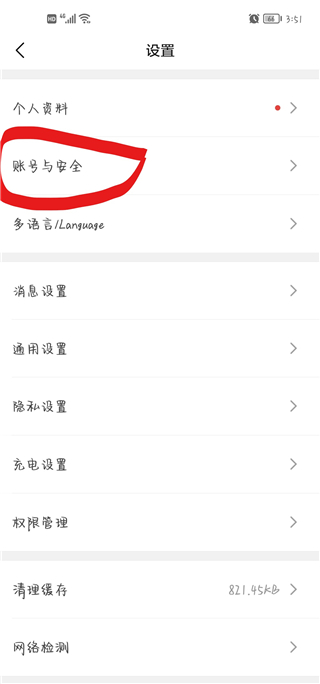 2、进入设置点击【账号与安全】。