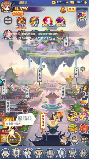 1、登录游戏,创建角色,完成任务。