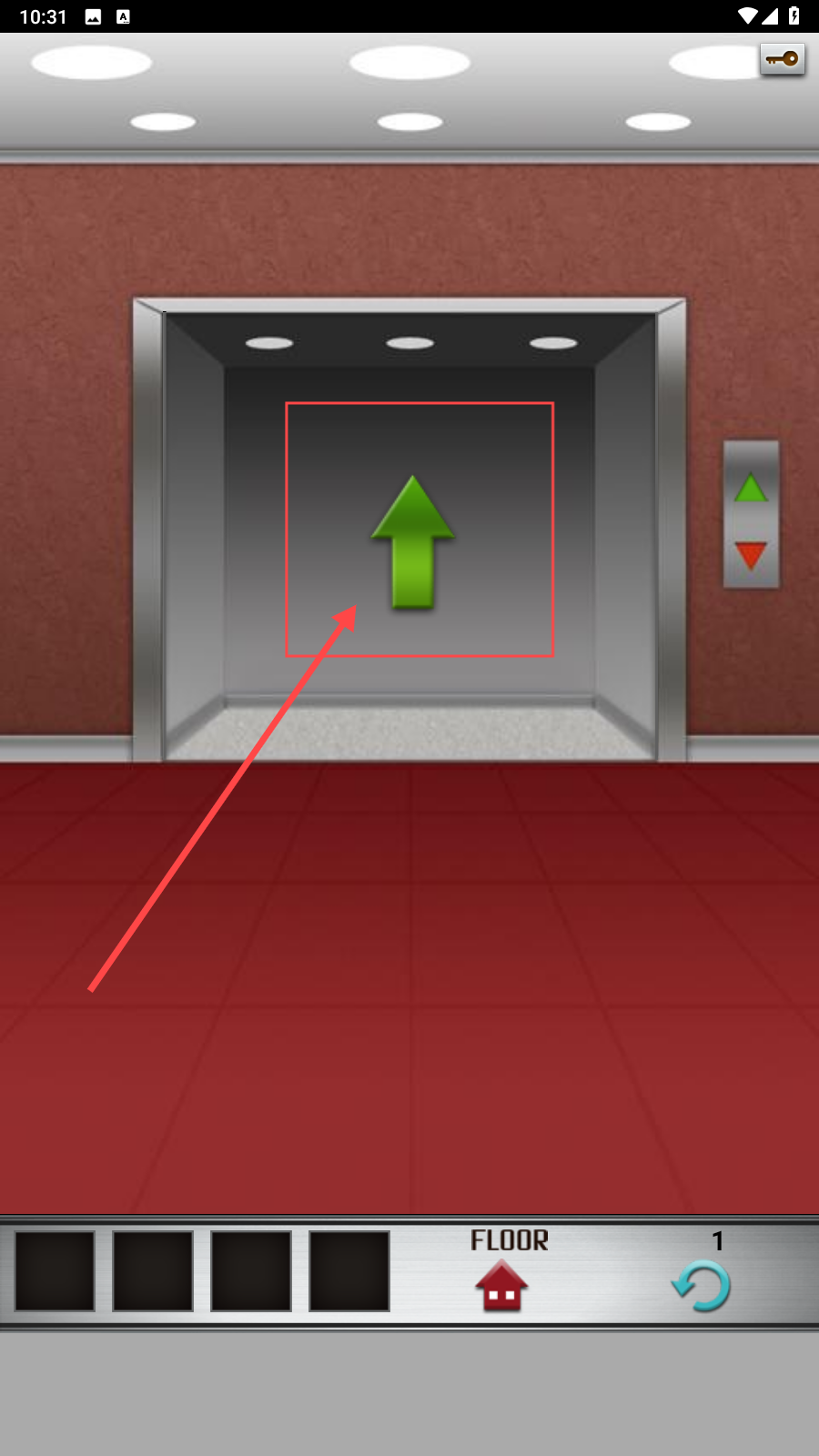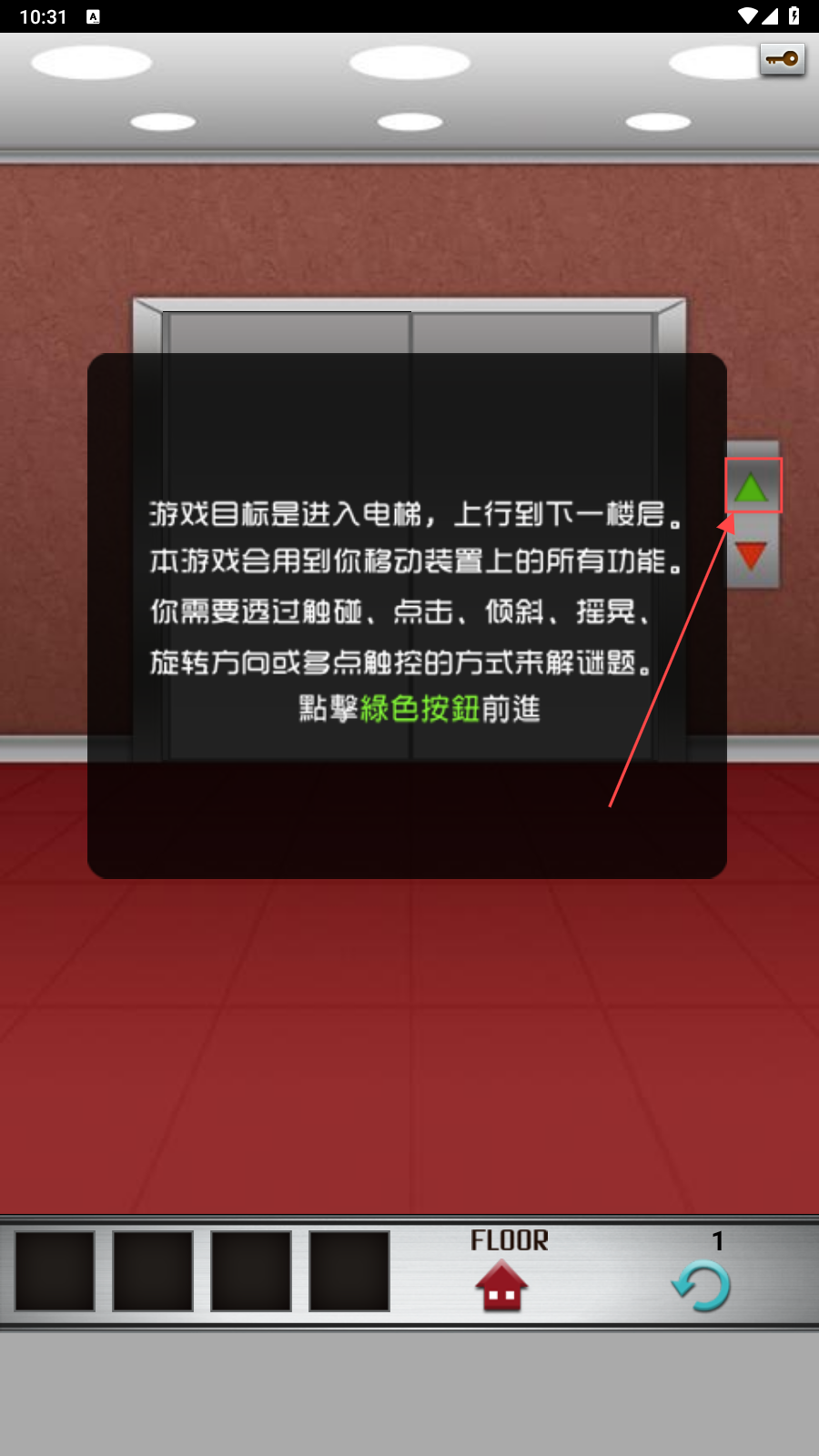 2、打开电梯后会出现一个绿色的箭头点击绿色箭头。