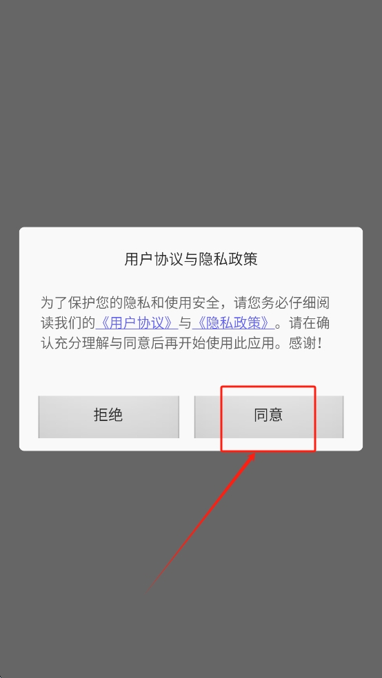 1、点击“同意”按钮接受用户协议与隐私政策。