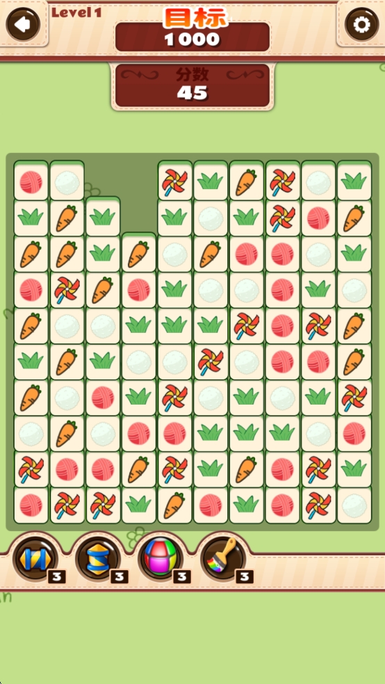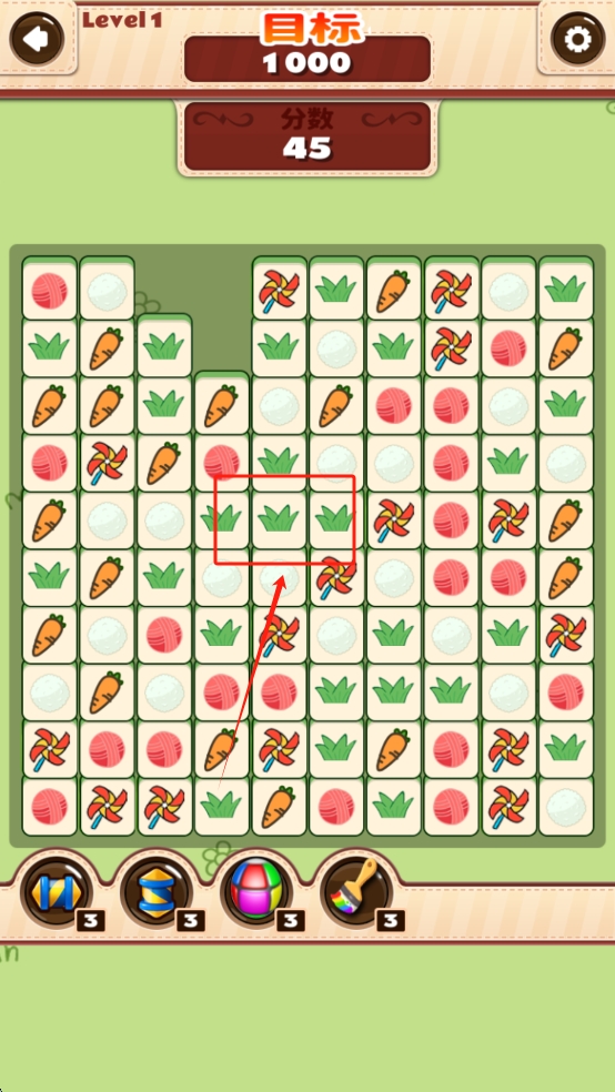 2、特殊道具使用:炸弹可以清除周围方块,彩虹球能匹配任意图案,合理使用道具是通关关键。
