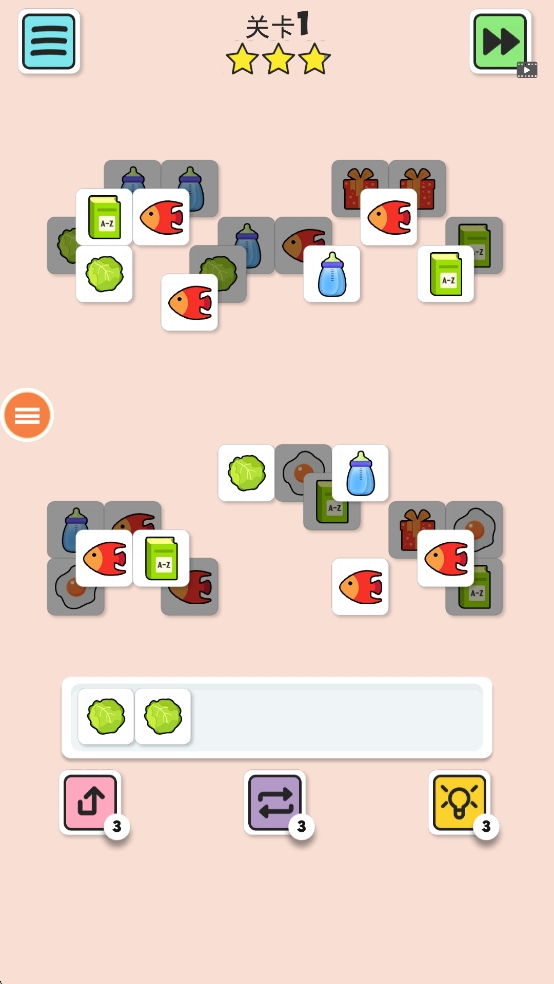 1、基础消除规则:点击选中三个以上同色方块即可消除,但必须先处理遮挡的上层方块。