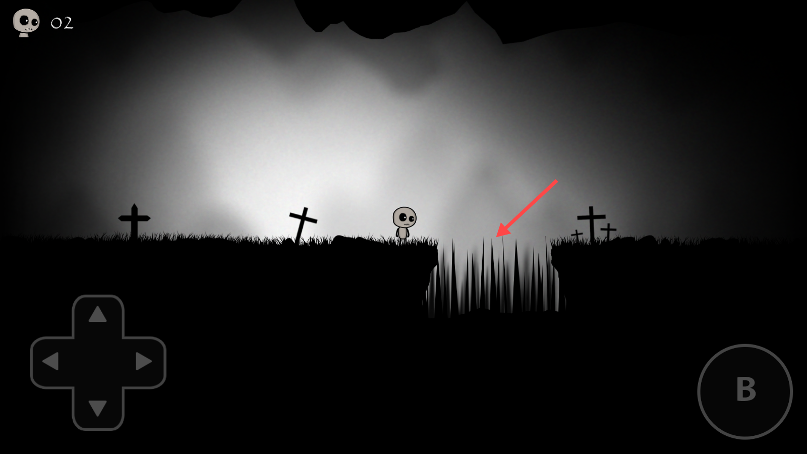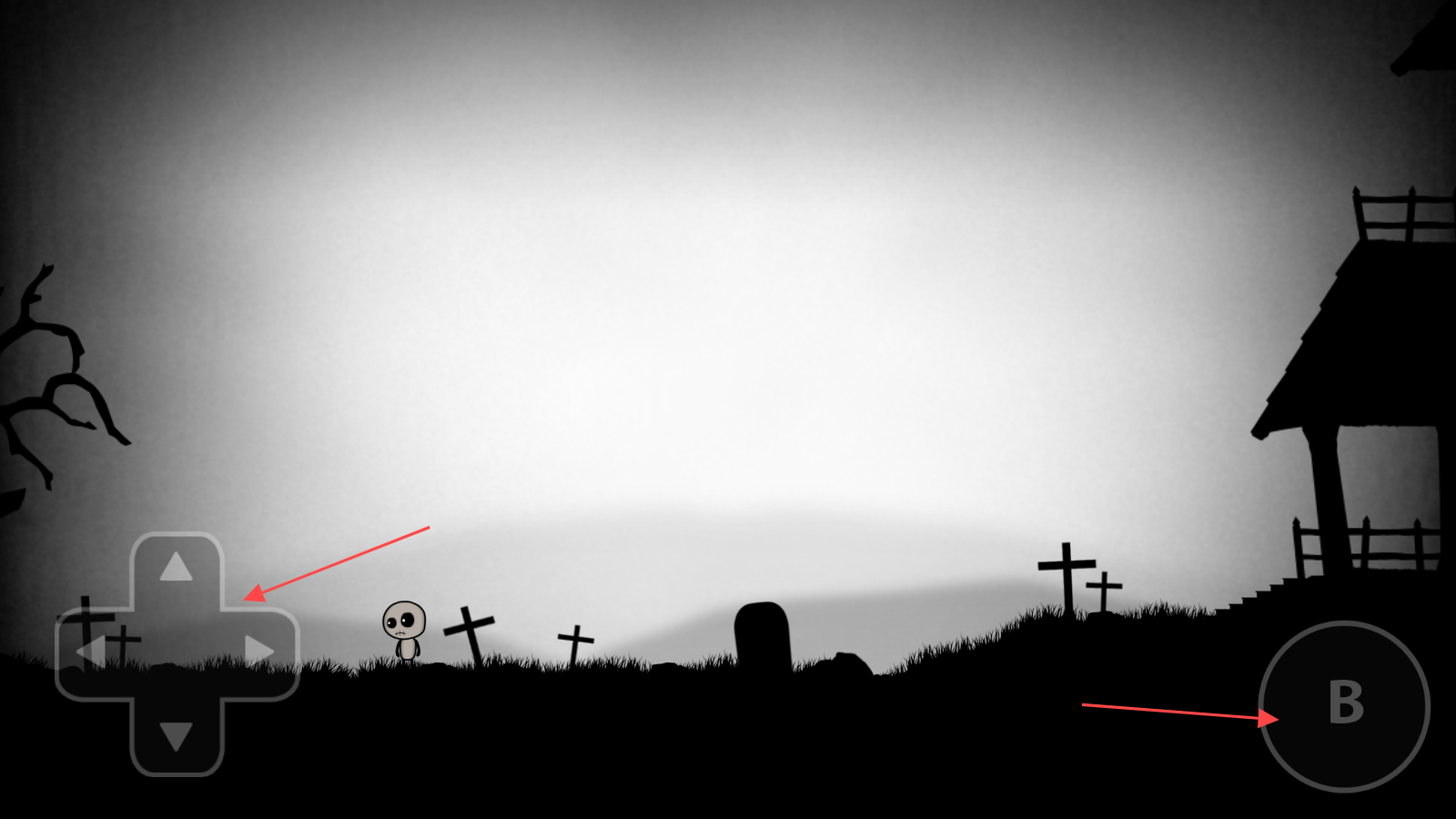 1、左边是操作上下左右的按键,右边的B是跳跃键。