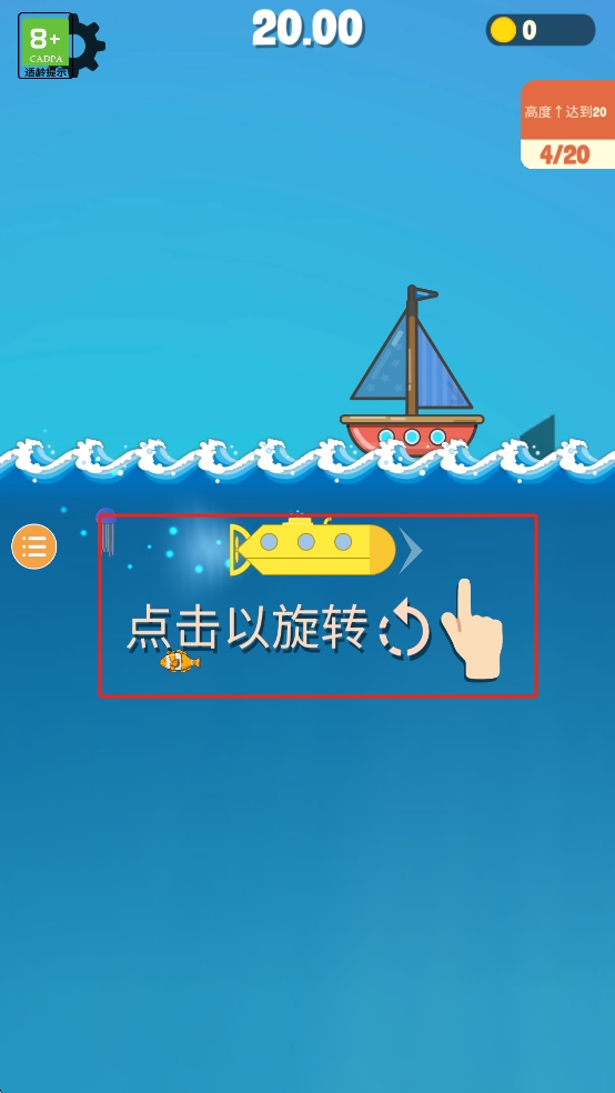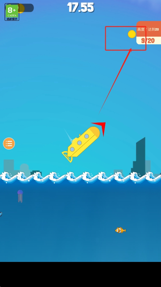2、简单上手操作:只需单指点击就能控制潜艇跳跃,操作门槛极低。但想要精准控制落点却需要技巧。