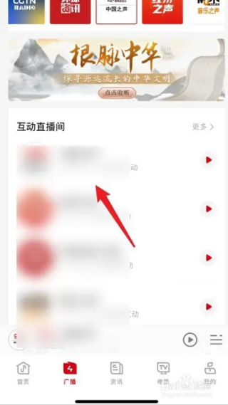 2、进入广播页面后,点击【需要的直播间】。