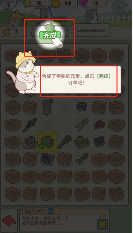 3、合成所需的各种元素,完成订单,收获丰厚奖励。
