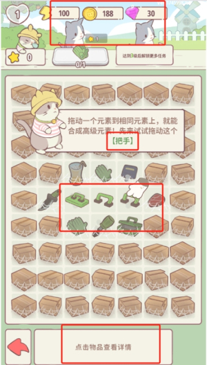 1、材料合成工坊:在庭院收集基础资源,通过三消式合并玩法产出高级建材与猫咪零食。