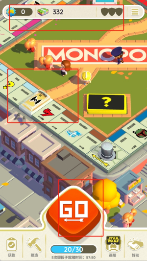 1、核心投掷机制:点击GO键启动骰子,点数决定移动格数,停留地块触发建设、奖励或随机事件。