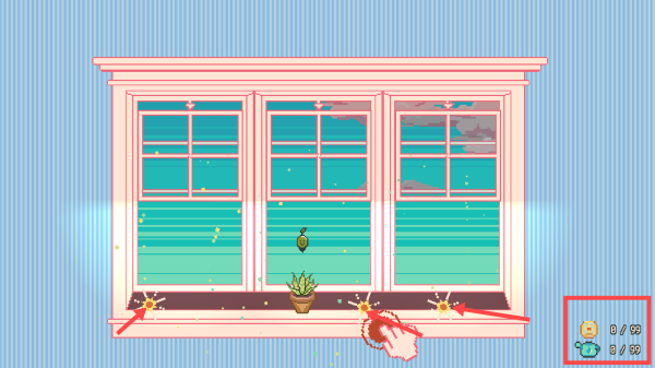 3、定期清理窗户污渍,使用工具并关注右下角工具数量如【0/99】【0/99】,及时补充以维护植物生长环境。
