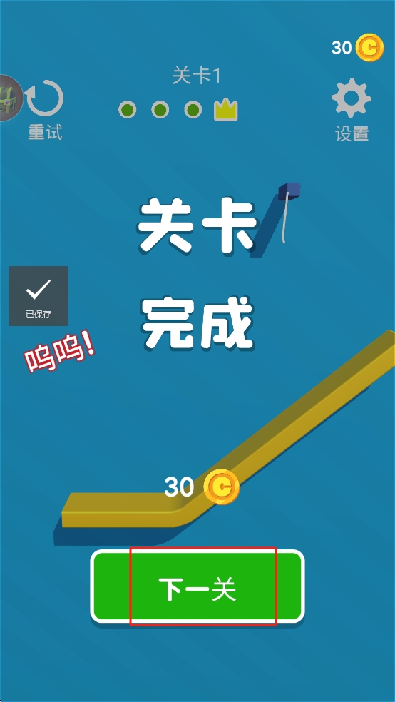 3、完成关卡后点击“下一关”继续游戏。