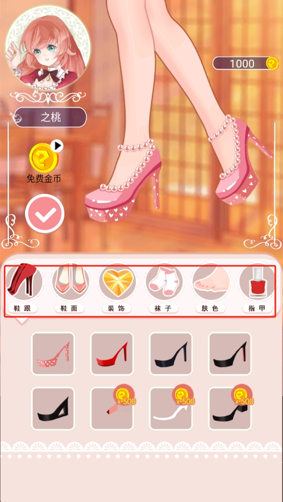 3、选择鞋跟、鞋面等装饰进行搭配。