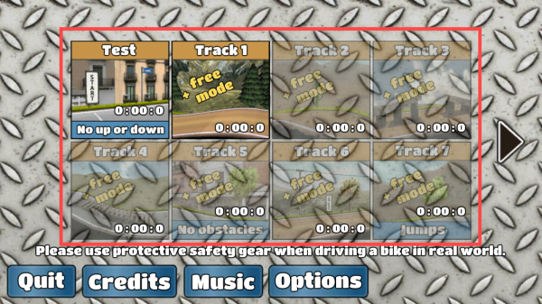 1、进入游戏可看到多个赛道如Track1等,部分赛道标有【freemode】,可选择该模式自由体验赛道。