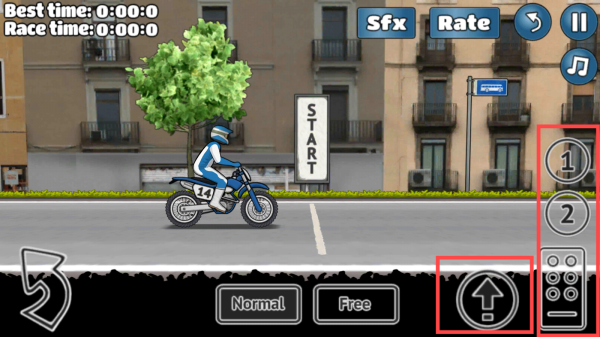 3、找到场景中的【START】标志开始比赛,利用右侧操作按钮(如标注数字及箭头的按钮)进行游戏操作。