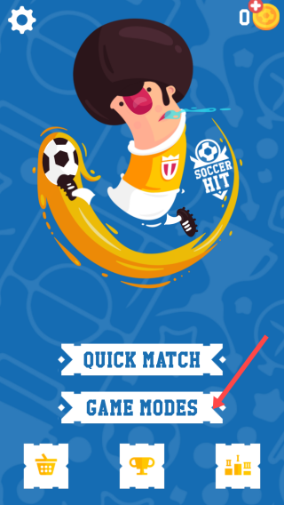 1、在SoccerHit游戏主界面,点击【GAMEMODES】进入游戏模式选择界面。