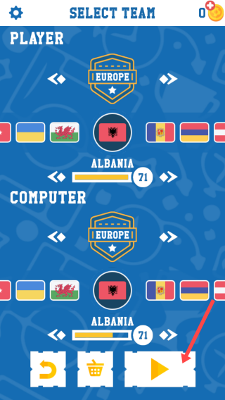3、在【SELECTTEAM】界面,选定队伍后点击右下角播放按钮开始游戏。