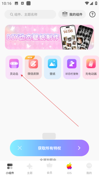 1、打开ColorfulWidget彩虹组件,点击【灵动岛】。