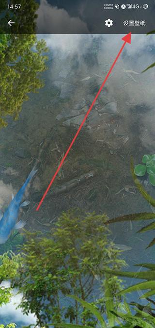 1、打开鱼池动态壁纸,点击【设置壁纸】。