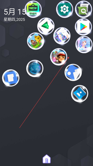 1、重力感应交互:基于智能算法实现图标重力翻滚,跟随手势方向自由移动,带来真实物理碰撞体验。