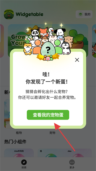 1、打开Widgetable组件,点击【查看我的宠物蛋】。
