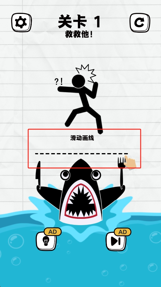 2、滑动画线救出角色。