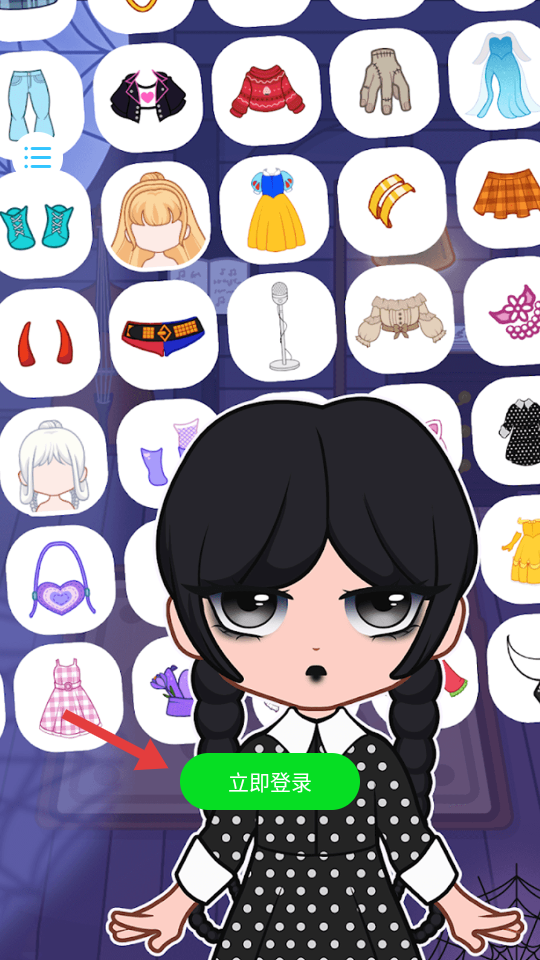 1、进入游戏换装界面,点击【立即登录】,即可利用丰富的服装道具打造个性角色。