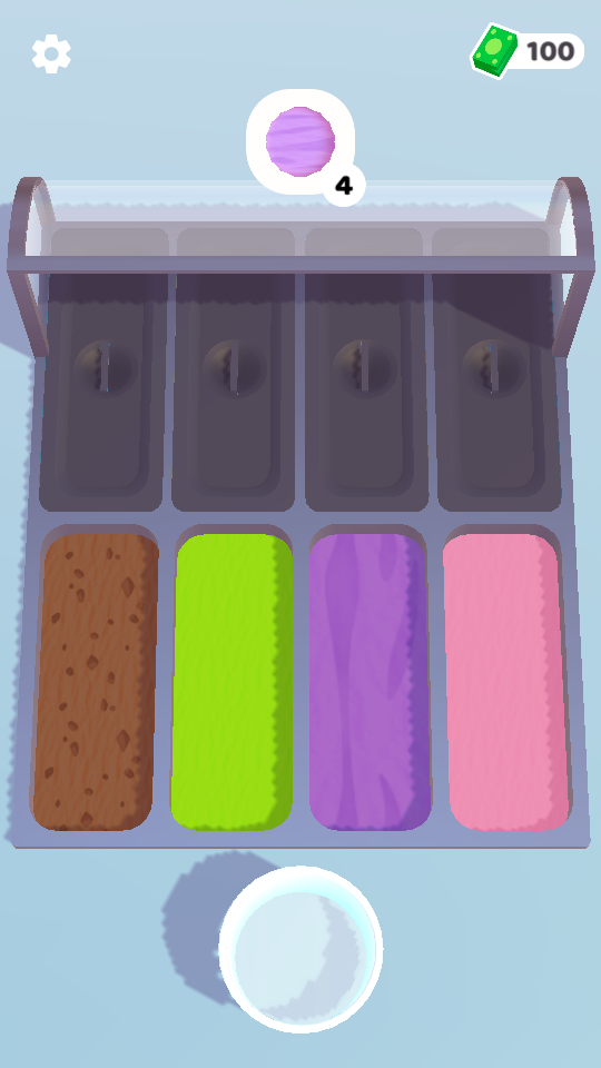 3、按照上方提示的样式,在下方选取对应颜色原料,如紫色球标“4”,则选取紫色原料进行冰淇淋制作。