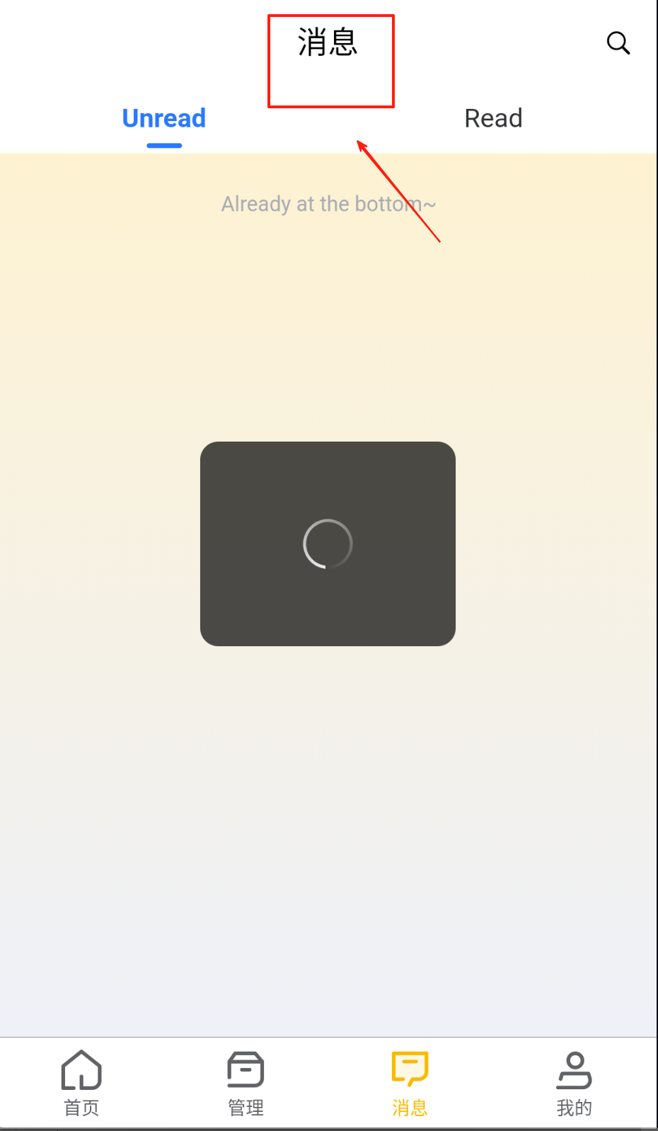 2、查看消息时左右滑动切换未读和已读,点顶部放大镜可搜索历史消息,下拉到底会有可爱小黄鸭提示已无更多内容。