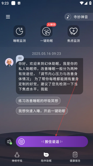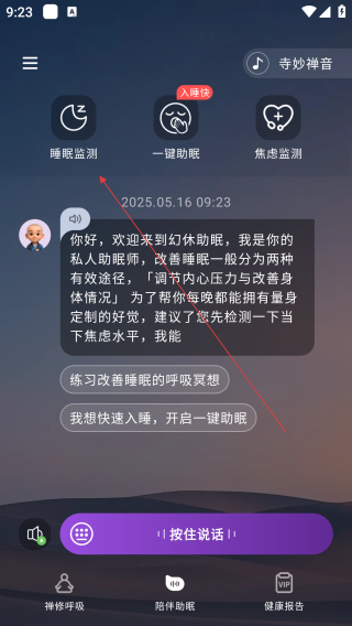 1、打开幻休,点击【一键助眠】可以帮助用户睡眠。