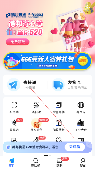 1、打开德邦快递,点击【寄快递】。
