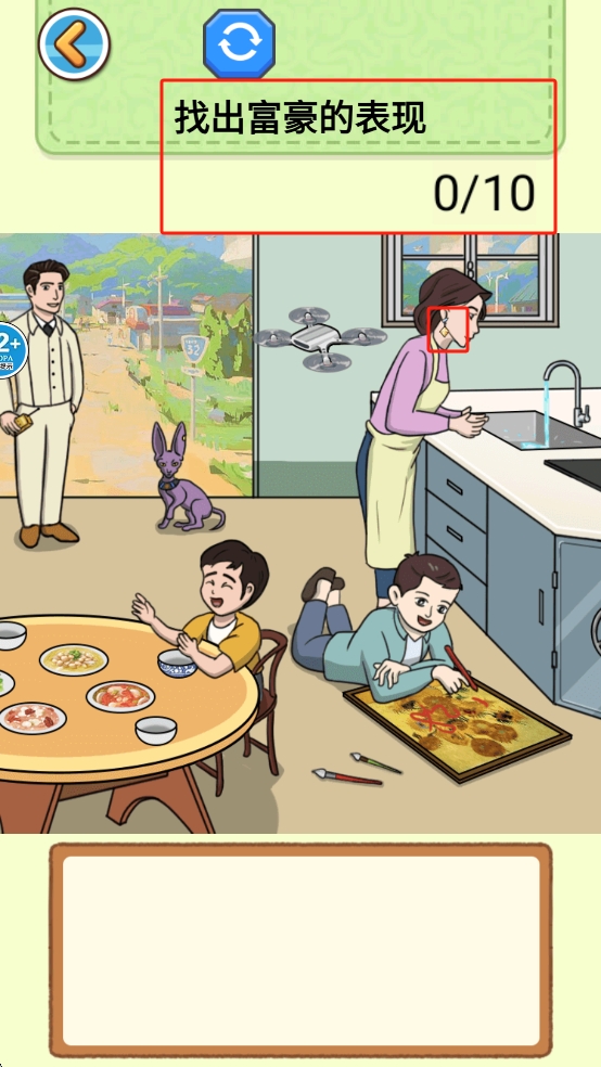 3、如在游戏主界面,点击“找出富豪的表现”按钮,开始游戏挑战。