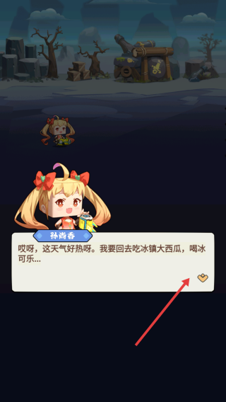 1、在对话界面,点击箭头所指位置,跳过对话进入战斗环节。