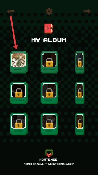 1、在游戏启动界面,按箭头指向点击封面为红色书本图案的【MYWINTERALBUM】。