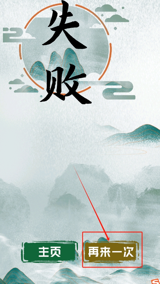 4、如果游戏挑战失败,点击“再来一次”按钮,重新尝试挑战。