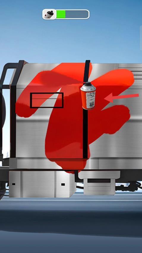 2、选择喷漆罐为银色车身喷涂红色图案,均匀覆盖,依据进度条完成个性化外观打造。
