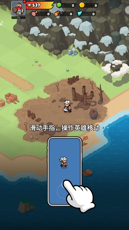 3、按提示【滑动手指,操作英雄移动】,熟悉基础操作,开始探索游戏世界。