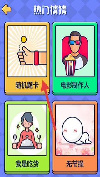 1、在“热门猜猜”界面,按箭头指向点击【随机题卡】。