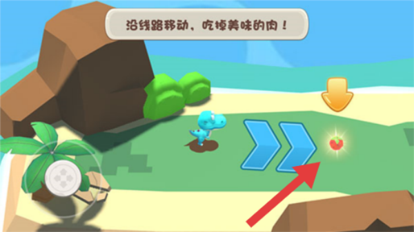 2、操控蓝色小恐龙按箭头方向沿线路移动,吃掉路上美味的肉。
