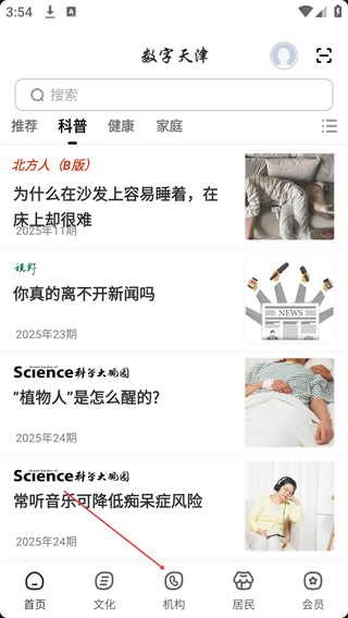 1、在应用首页,点击底部导航栏的【机构】,进入机构分类页面。