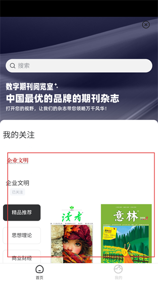 4、进入“数字阅览室”板块,即可查看其包含的期刊、杂志等数字资源内容。