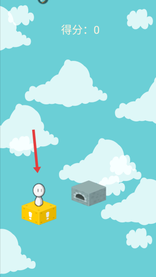 2、游戏过程中,操控小人按箭头方向在云朵平台间移动。