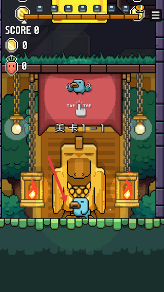 1、在关卡1-1界面,按提示点击屏幕(TAPTAP),操控蓝色小鸟开始游戏。