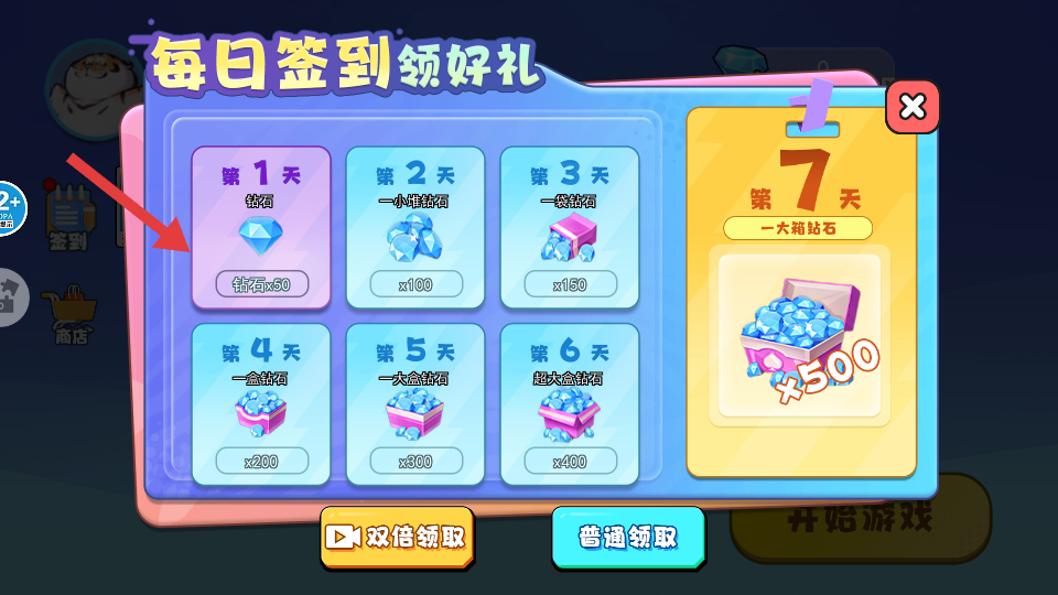 2、点击【签到】进入【每日签到领好礼】界面,连续签到可领取钻石奖励,如第1天领【钻石x50】,累积钻石提升游戏资源。