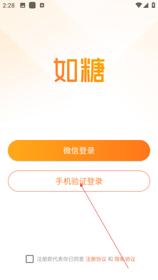 1、打开如糖,点击【手机验证登录】。