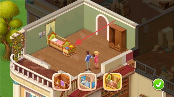 2、首先是解锁剧情,然后根据提示进行放置婴儿床。