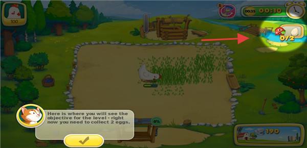 3、在这里你会看到这个关卡的目标,现在你需要收集2个鸡蛋。